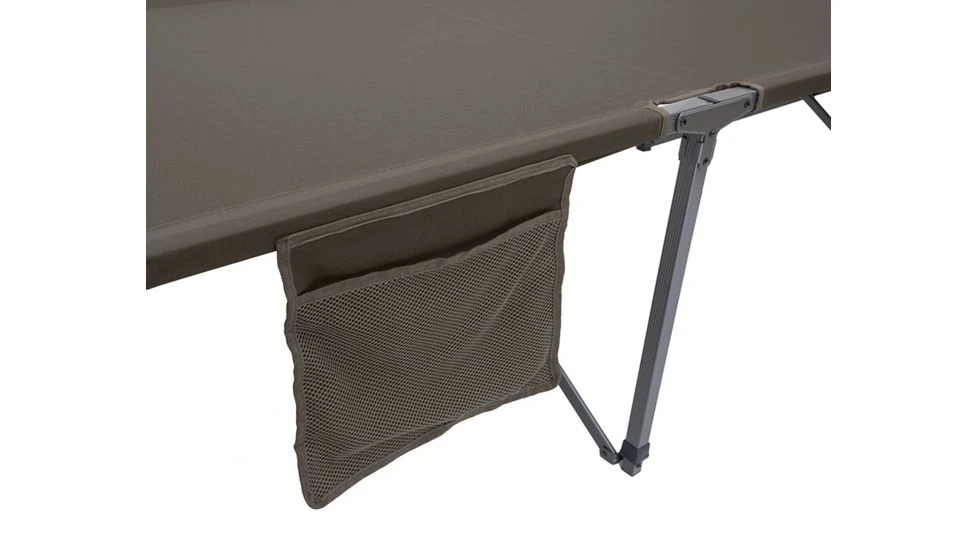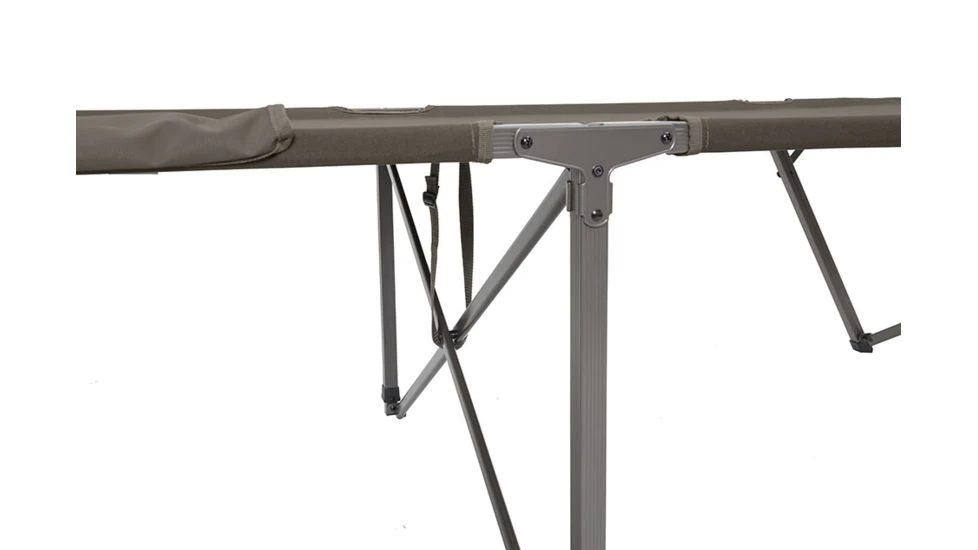 The Escalade Cot is a unique item because it sets up so quickly and easily… and taking it down is just as easy. The fabric and frame are all connected, so there’s no assembly required. Basically after you take it out of the included stuff sack, you unfold the cot and it “pops” open… and you’re ready for a good night’s sleep. Not having end bars to attach also ensures that your head won’t ever hit anything besides fabric. When you wake up in the morning, and are ready to pack it up, you simply turn the cot on its side, let it “collapse” and fold it up. It’s really that easy! The angled legs on the cot prevent it from rocking back and forth and the center support makes the cot rock solid.![]()