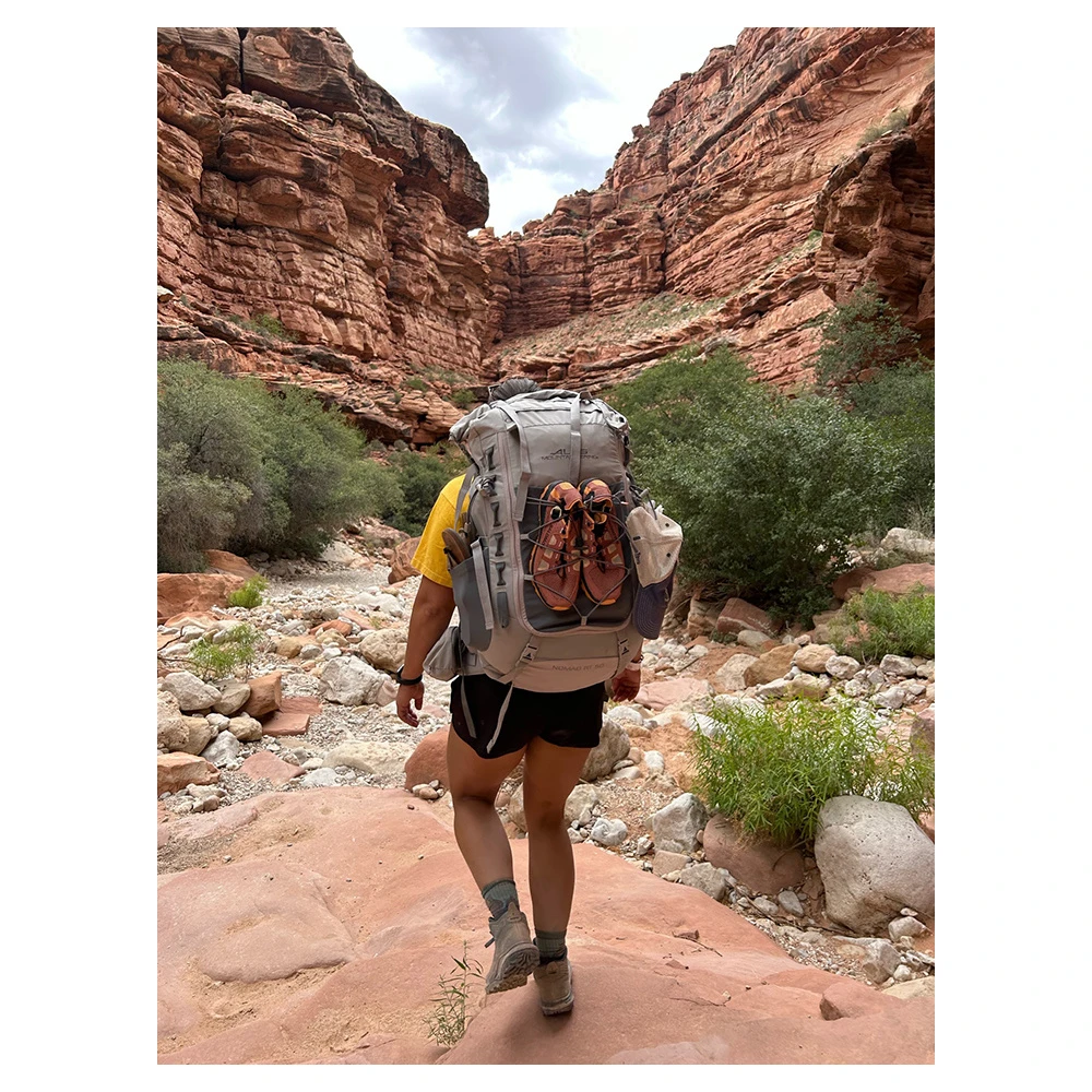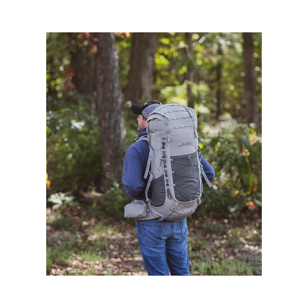 The ALPS Mountaineering Nomad is an innovative roll top pack design with an expandable volume main compartment. The Nomad can be expanded from a 40L pack all the way up to an 60L pack making it customizable for all of your backpacking adventures. The main compartment is easily accessible via a generous zippered opening. Its adjustable suspension system features two flat aluminum stays and adjusts to fit torso ranges from 15.5–20.5 inches. The removable waist belt features removable pockets for even further customization of the pack. The Nomad’s stretch side pockets, side compression straps, extensive daisy chains and trekking pole loops provide additional gear storage and lashing points. A hydration pocket with two side outlet hydration ports and a built-in rain cover are both included. The Nomad is thoughtfully designed to be your perfect backpacking companion.