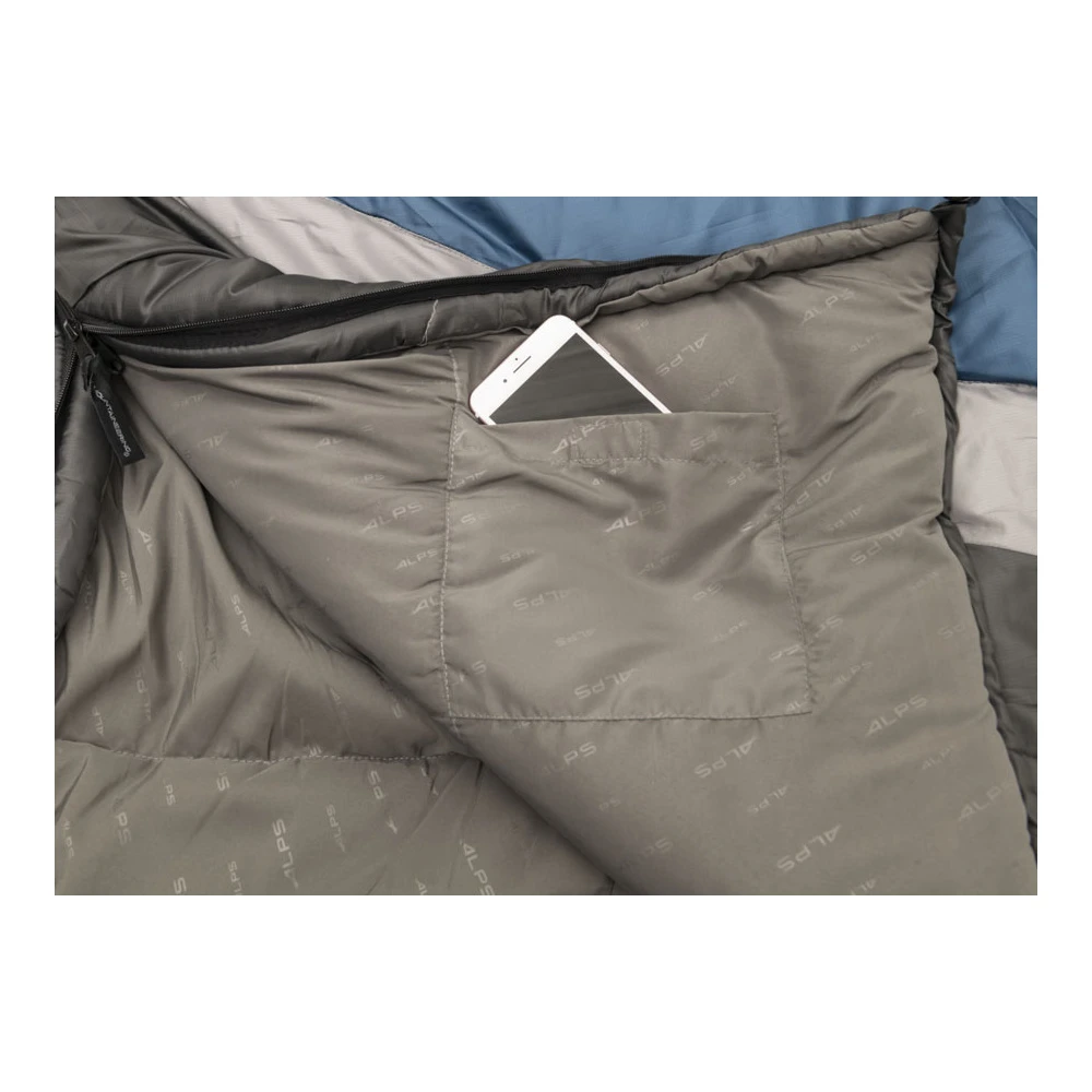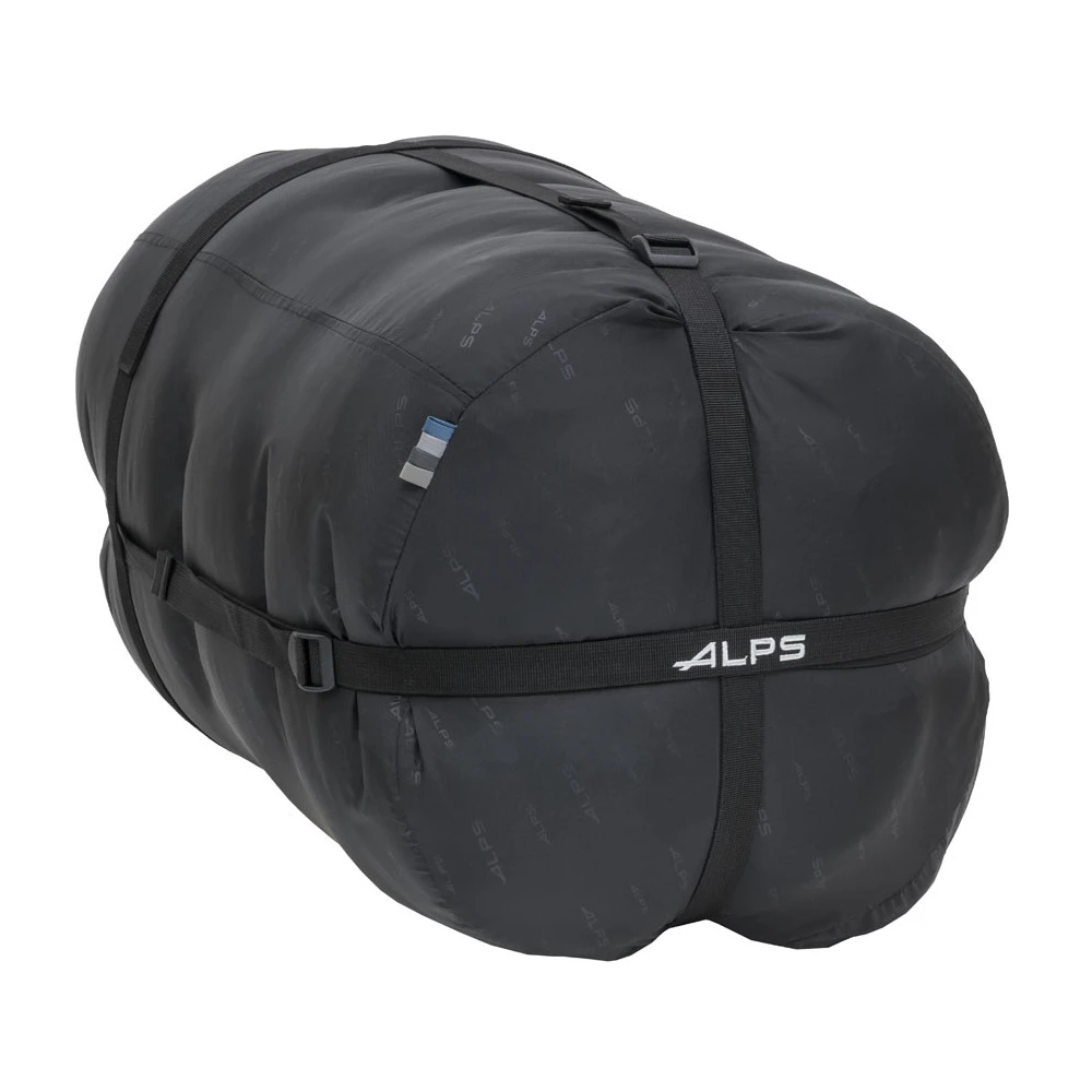 The Spectrum sleeping bag is perfect for the couple who wants to stay warm together. The rectangular double-sized bag can be zipped apart to form two individual bags for versatility. The chevron design looks great both as a double bag and as individual bags. The brushed polyester liner and 210T polyester ripstop fabric offers durability while the 20° temperature rating (with synthetic TechLoft Silver insulation and two-layer construction) ensures cozy nights. The two internal pockets keep small items handy and the compression stuff sack makes packing easy. The ALPS Mountaineering Spectrum is a camping essential for the outdoors couple.